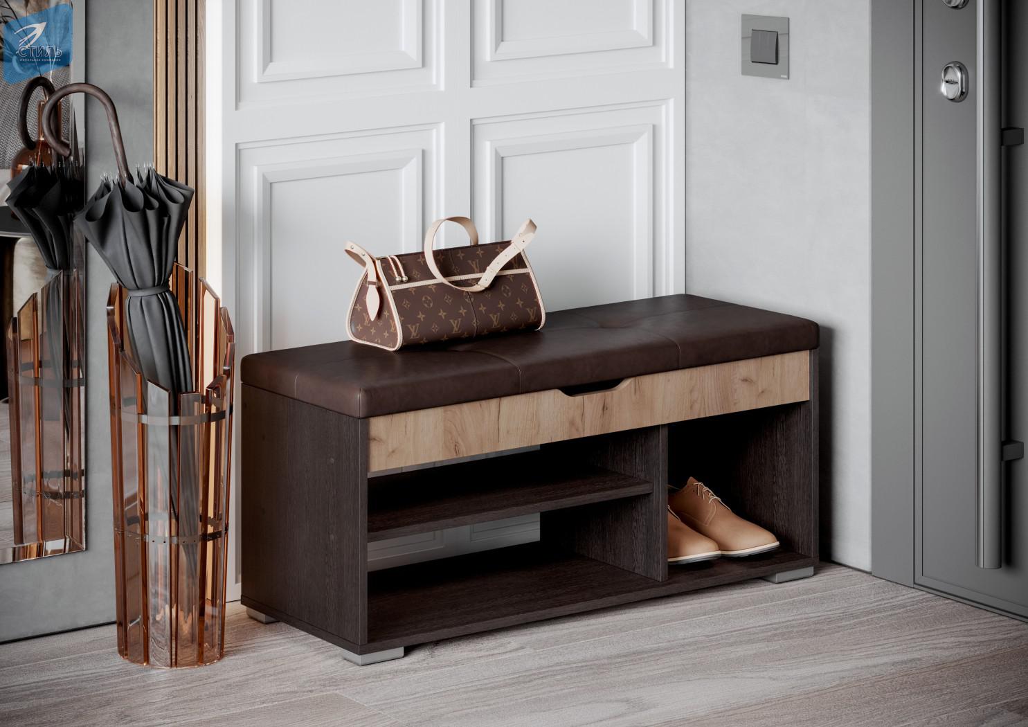Банкетка БК-001 "Эва" Венге/дуб крафт золотой/Кожа Темно-коричневая Остин / Ostin