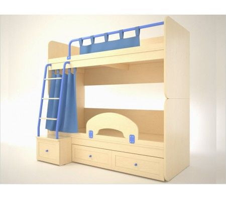 · Комплекс состоит из двухъярусной кровати и двух вместительных выкатных ящиков. · Комплект «НЕМО» можно поставить как две отдельные кровати. · Верхний ярус оборудован удобным и безопасным металлическим бортиком. · Укромное местечко обеспечивает комплект занавесок. · Комплект можно дополнять изделиями из модульной системы «ОЛИМП». · Надежная, безопасная лестница с удобными ступеньками позволит ребенку легко забраться в кровать. · Расположение лестницы (справа или слева) можно выбрать при сборке. · Скругления и радиусные скосы обеспечат безопасность Вашему ребенку.