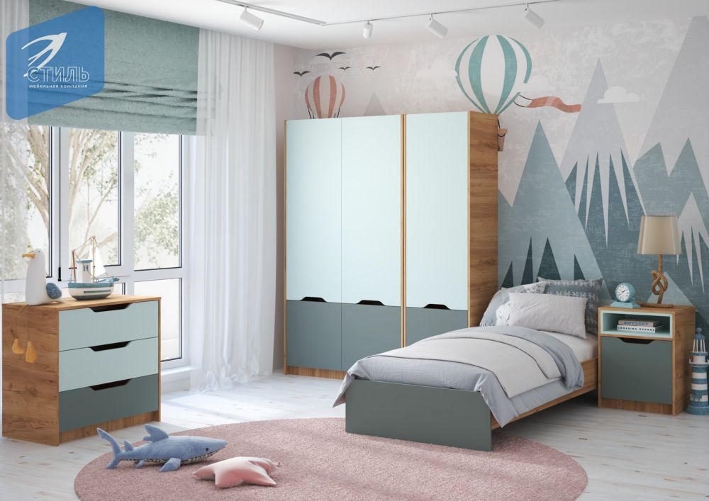 Полка навесная RICH ПН-001 Мята/Сумеречный голубой/дуб крафт золотой