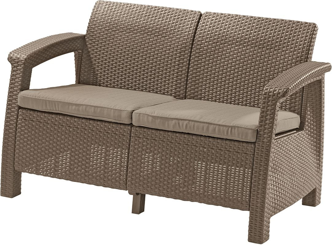 Удобный комплект мебели из искусственного ротанга производства фирмы KETER Group. Широкий диван позволяет поместится большому количеству людей, а мягкие спинки мебели создают прекрасные условия для отдыха на открытом воздухе.