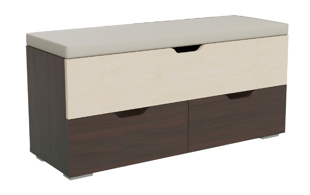 Мебель этого производителя многофункциональна, эргономична, удобна, проста и долговечна в процессе эксплуатации (покрытие материалов обеспечивает защиту от истирания, мелких сколов и царапин). Диванчик «Флинт» - это отличный вариант для организации пространства даже небольшой комнаты. Необычный стильный дизайн привлекает внимание. Каркас изделия производится из ЛДСП, торцы обработаны кромкой ПВХ (противоударный кант). Мягкая крышка-сиденье обтянута кожей в бежевом цвете. Диванчик дополнит прихожую не только местом для сидения, но также и дополнительной зоной для хранения. Эта компактная модель очень вместительна: крышка сиденья откидывается, открывая ящик, а в нижней части изделия имеются два выдвижных ящика. Благодаря использованию практичных материалов, диванчик неприхотлив в уходе.