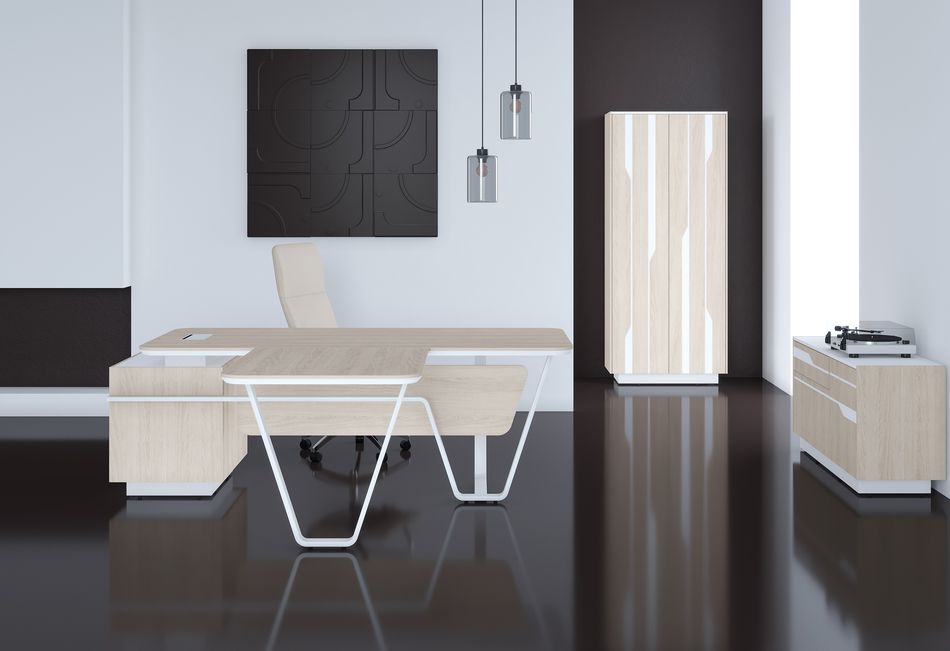 Стол руководителя левый Line СФ-571102.1 Дуб светлый Черный графит
