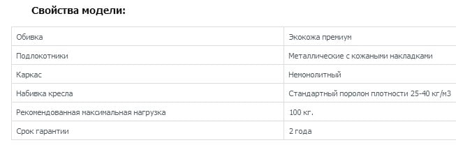 | Обивка подлокотников | Экокожа |