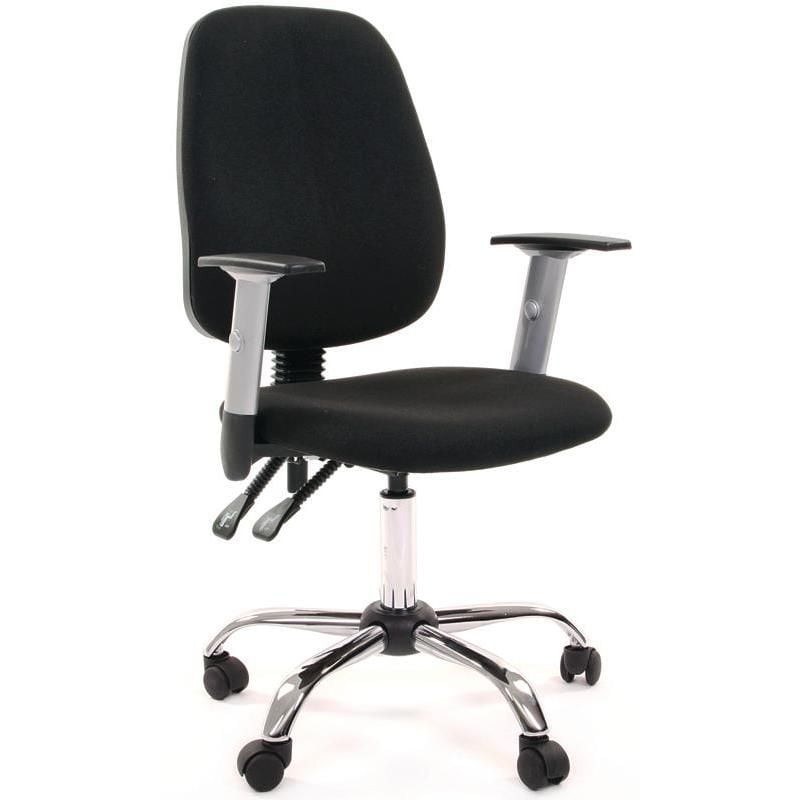 Кресло для оператора EChair-214 AL имеет обивку из прочной износостойкой ткани черного цвета. Подлокотники Т-образной формы выполнены из пластика. Крестовина изготовлена из металла с хромированым покрытием. Механизм качания - Asynchro. Asynchro - механизм качания, позволяющий изменять угол наклона спинки независимо от сиденья. Угол между спинкой и сиденьем не фиксирован. Есть возможность фиксирования спинки в нескольких положениях. Максимальная статическая нагрузка - 100 кг.