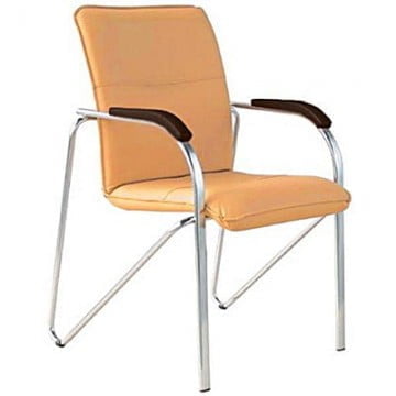 Стул для посетителей на металлическом каркасе, покрашенном износостойкой краской цвета "серебро". Подлокотники стула декорированы деревянными накладками. Кресло подходит для благоустройства, как офисных помещений, так и домашнего интерьера.