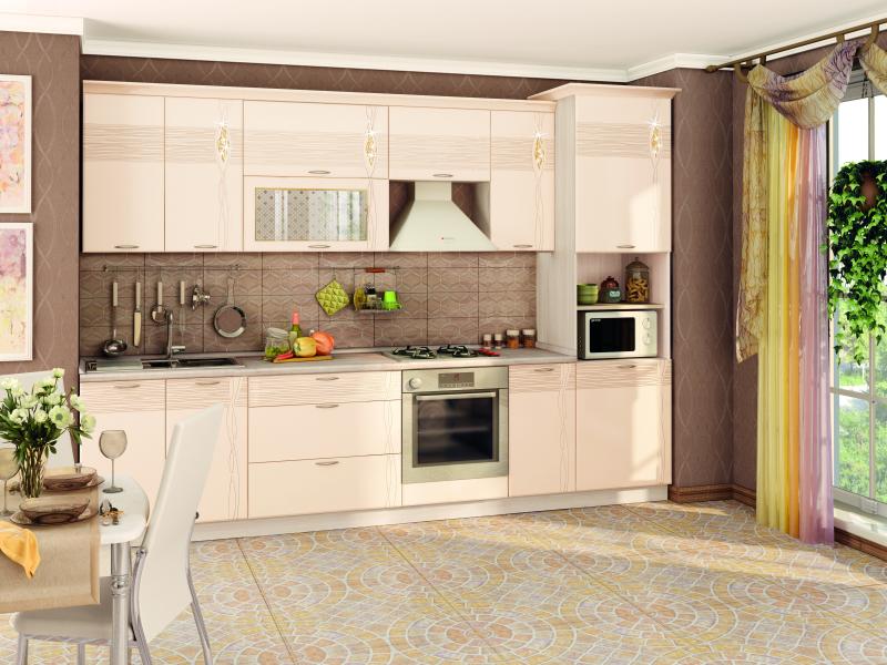 Отличительные черты набора мебели для кухни «Софи» - простота, четкость и лаконичность линий. Этот набор мебели понравится как любителям классики, так и ценителям современных тенденций в мебельном дизайне. Набор мебели для кухни «Софи» выполнен в мягком сочетании цветов – «Магнолия глянец» и «Дуб кобург». Использование современных материалов в сочетании с классическими акцентами делает кухню оригинальной. Оригинальные витрины и решетки, интересная фрезеровка фасадов, украшенных глиттерным дизайнерским рисунком и кристаллами Swarovski, и мягкий нежный цвет дверей просто не может не притягивать взгляд. Кухня «Софи» – современное прочтение классической элегантности. С такой мебелью интерьер кухни становится уютным, домашним и элегантным. Элегантная простота форм и функциональность коллекции «Софи» представляют широкие возможности для построения современного, динамичного и удобного интерьера кухни. Благодаря использованию в конструкциях светлых тонов, внешне мебель воспринимается легкой и элегантной. Подобная мебель не сужает пространство за счет лаконичности дизайна и плавного изгиба линий. Это отличное решение для обеспечения комфортных условий.