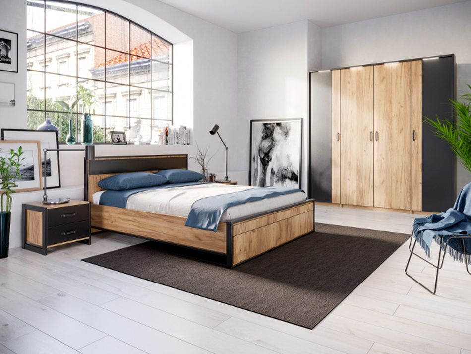 Кровать двуспальная 1600 с тумбами Техно 06 Дуб Золотой Черный