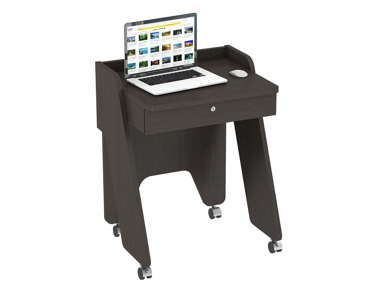 Один из самых компактных столов производства ВасКо. Ширина столешницы с закругленными углами всего 60 см, под ней располагается удобный выдвижной ящик с замком, в который легко поместится стандартный ноутбук. Столик оснащен колесными опорами, передние колëсики со стопорами. Модель выполнена в современном стиле.