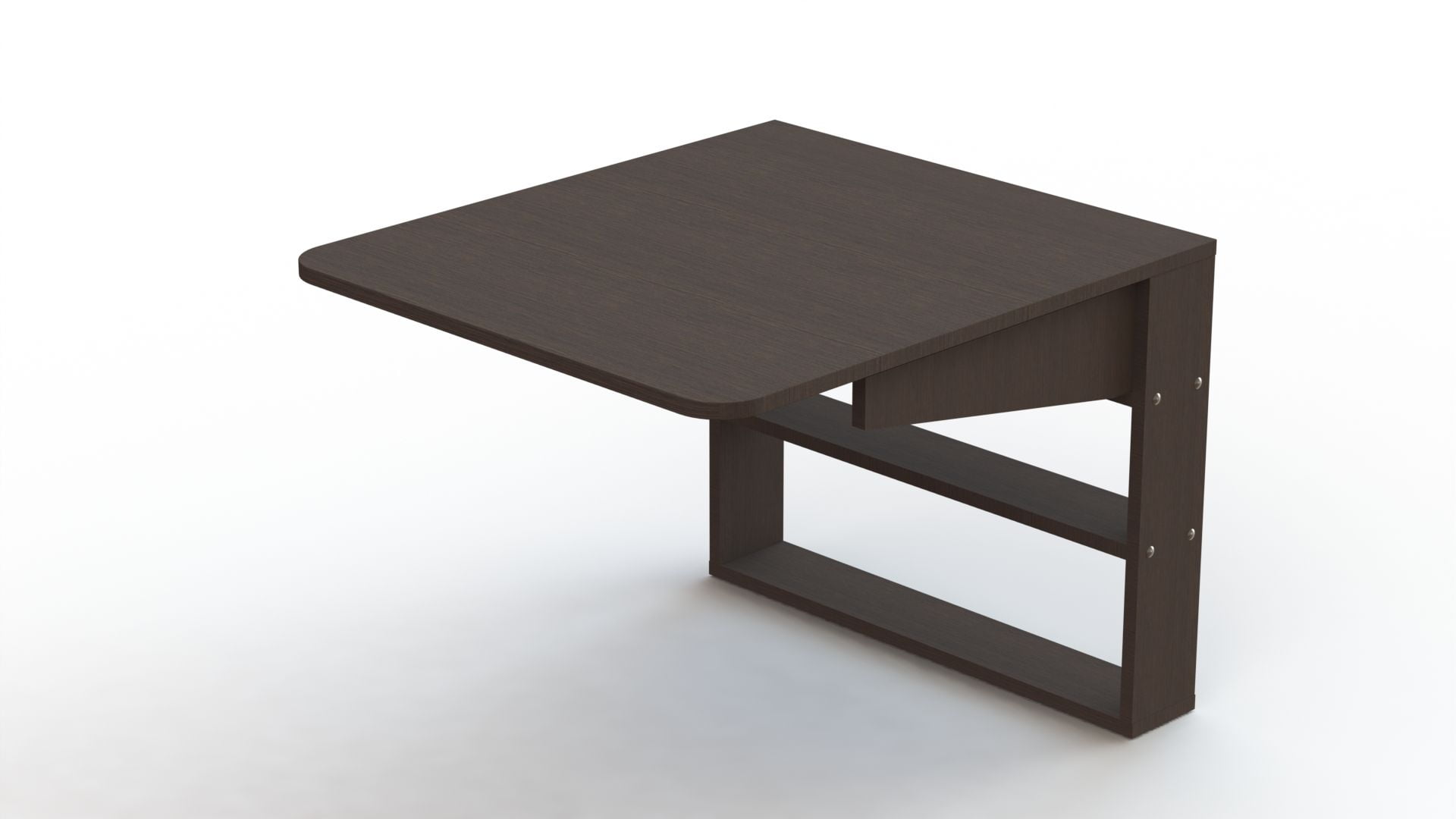 Занимает минимум места в малогабаритном помещении. Крепиться стол к стене. Обратите внимание, что стена должна быть крепкой для крепления. Не смотря на свои компактные размеры, конструкция стола продуманна, так что стол очень устойчив и надежен. Внутри стола расположена полочка для хранения.