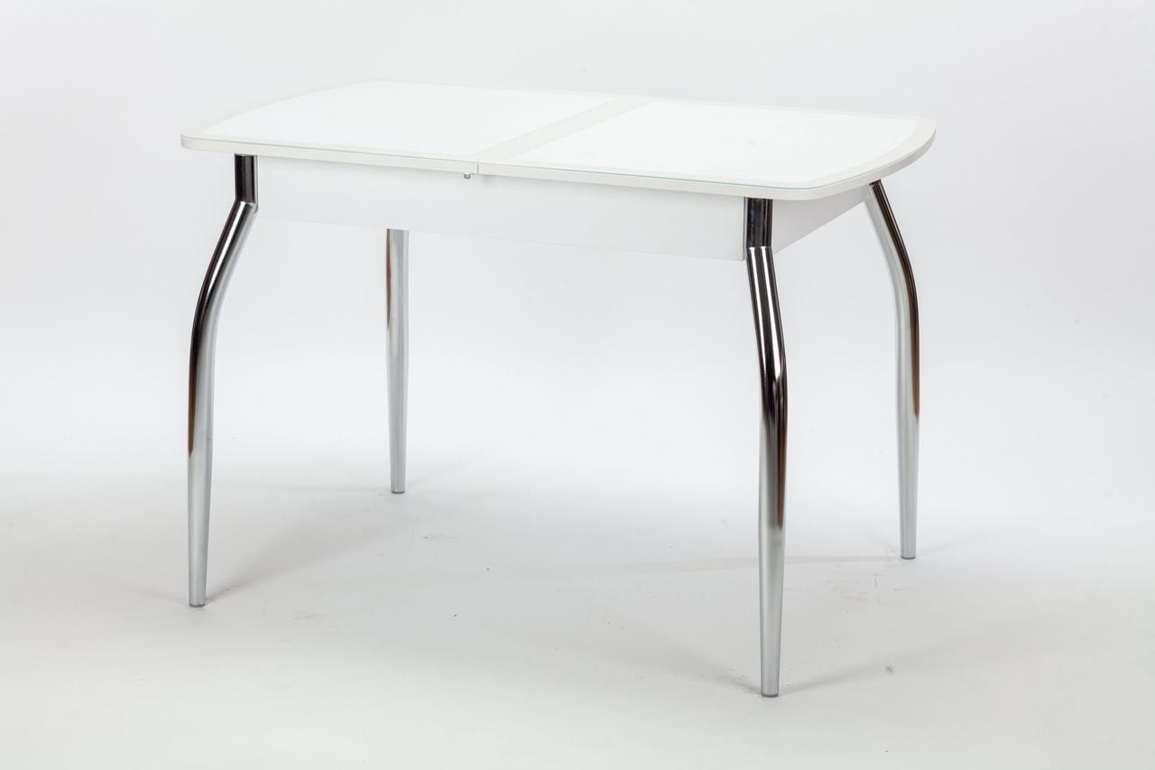 Обеденный раздвижной стол Чикаго КЗ (6191) - современный обеденный стол. Необычное сочетание ЛДСП, кожзама и закаленного стекла в исполнение столешницы придаст шарм вашей кухне.