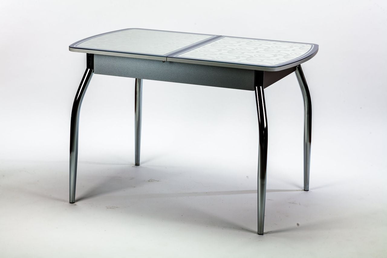Обеденный раздвижной стол Чикаго КЗ (6191) - современный обеденный стол. Необычное сочетание ЛДСП, кожзама и закаленного стекла в исполнение столешницы придаст шарм вашей кухне.