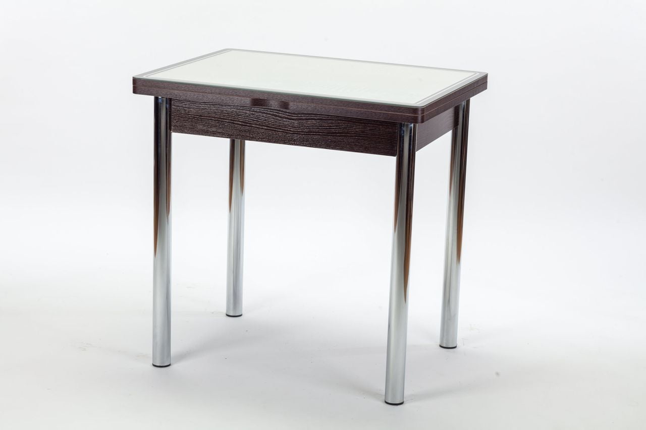 Cтол Руан СТ (6194) - столешница выполнена из цветного стекла и кожзама, ноги металлические цвета металика, подстолье из ЛДСП.