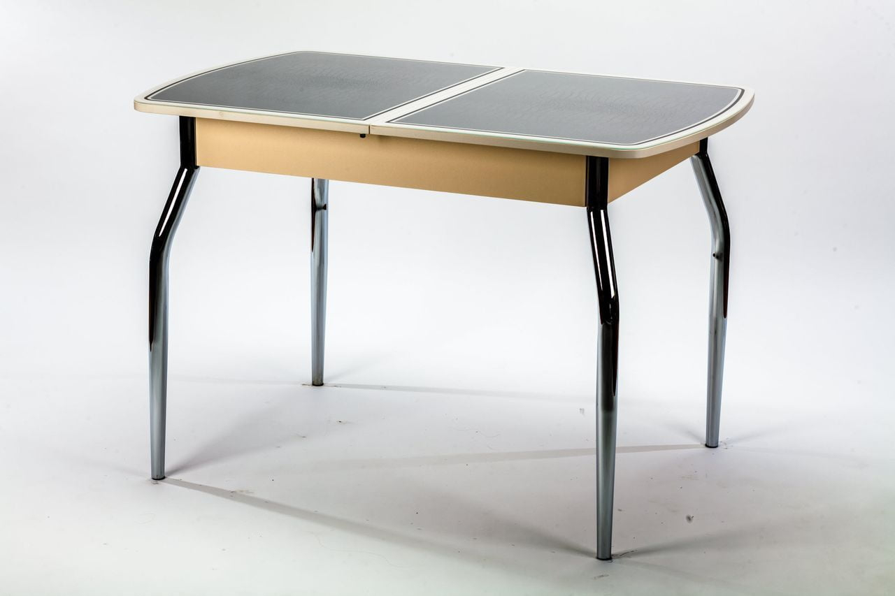 Обеденный раздвижной стол Чикаго КЗ (6191) - современный обеденный стол. Необычное сочетание ЛДСП, кожзама и закаленного стекла в исполнение столешницы придаст шарм вашей кухне.
